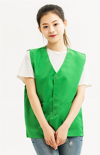 景田装饰马甲选择的是绿色,单排扣,方便工人的穿脱,暗辑线贴袋,方便工人物品的携带,所使用的马甲的颜色与装修装饰绿色环保理念相吻合,颜色新颖靓丽,后背加以白色印刷,马甲也逐渐成为工作服选择的一个类型。