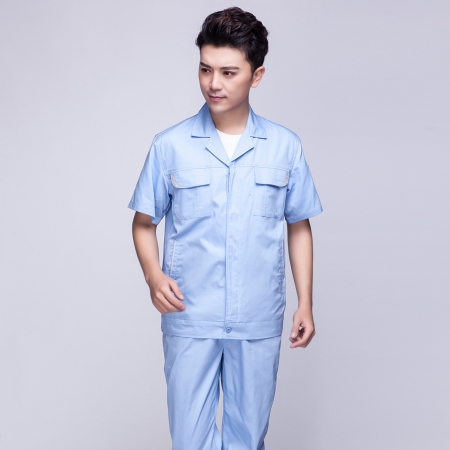 苏州鹰诺服装:艳蓝色短袖工作服AD12-4