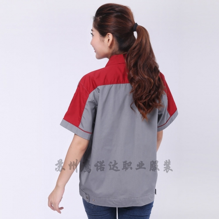 苏州鹰诺服装:藏青拼大红夏季工作服AD103