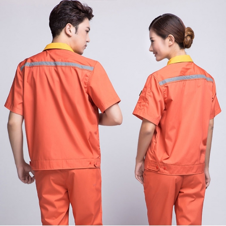 苏州鹰诺服装:橘黄拼黄色短袖工作服AD09-5