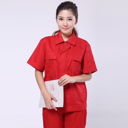 苏州鹰诺服装:大红涤纯棉工作服AD083-QM