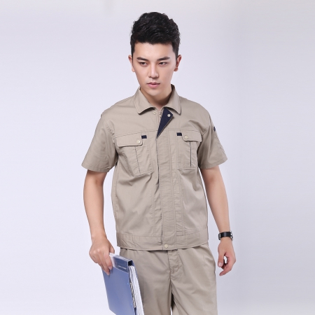 苏州鹰诺服装:驼色配深蓝施工工装AD073