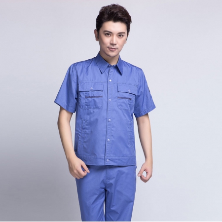 当前位置: 主页 > 苏州鹰诺服装:按工作服定制适合行业分类 > 机械加工工作服 > 湖兰色短袖工作服AD11-2