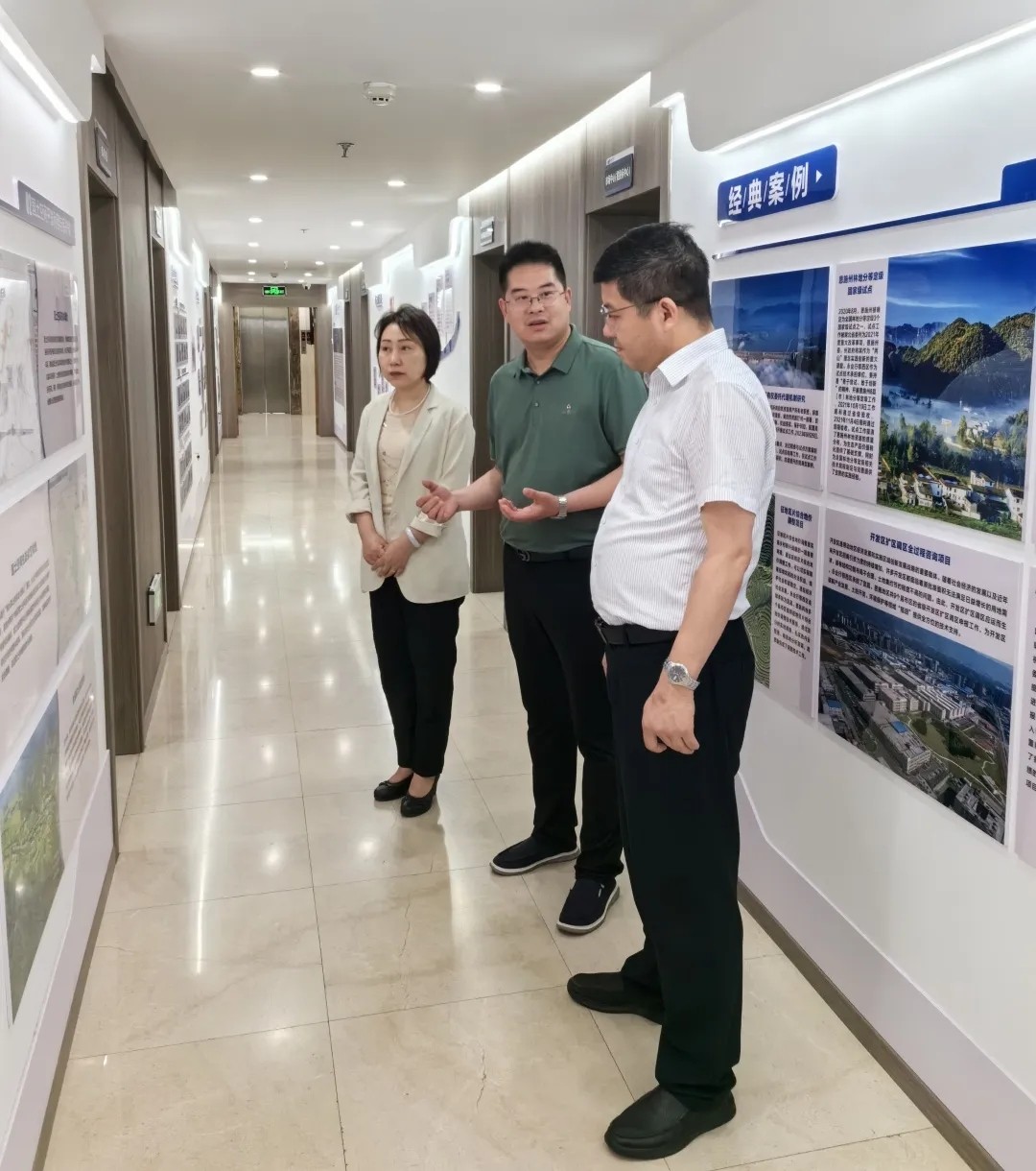 2024年5月15日,湖北省政府参事调研组一行在安徽调研期间,莅临永业行安徽公司考察交流。安徽省政府参事室参事处处长姚觉云参加调研。湖北省政府参事、永业行党委书记、董事长潘世炳,安徽公司总经理徐山柱等热情接待并与调研组座谈交流。 调研组一行首先实地参观了永业安徽公司办公区,详细了解了公司的发展历程、品牌影响力、永业行等,并就企业经营和发展与永业行管理层代表进行座谈。 座谈中,徐山柱围绕资源环境、投资金融、评估咨询三大产业链在安徽的业务开展、经营管理情况及公司未来发展规划进行了介绍,并表示安徽公司将继续积极承担社会责任、助推安徽经济高