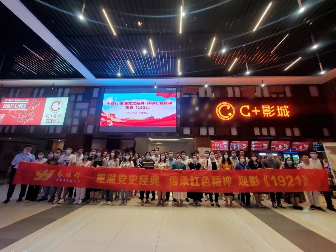 为庆祝党的百年华诞,激发广大员工爱国情怀,弘扬革命主旋律,进一步掀起党史学习教育的热潮,7月9日,永业行总部、鄂西区共同组织员工集中观看献礼建党100周年电影《1921》,近200余人参加了本次活动。 《1921》 影片聚焦1921年前后,13位来自五湖四海的热血青年,从民族危亡的困境出发,克服重重困难聚集上海,召开中国共产党第一次全国代表大会,宣告这个改变了亿万人民前途命运的政党正式成立。自此,中国历史进入新篇章。 跟随影片,大家重温了中国共产党成立之初的那段峥嵘岁月,深刻认识到红色政权的来之不易、新中国的来之不易,心情久