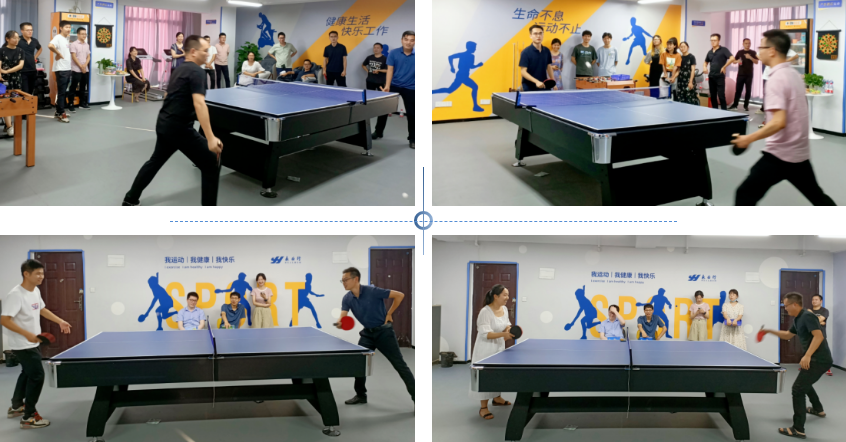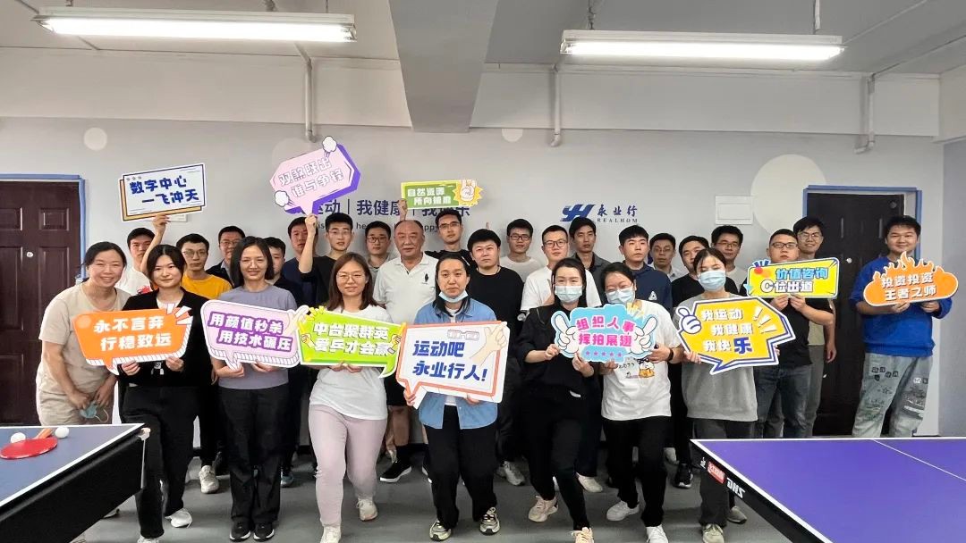 为丰富员工业余文化生活,增强团队凝聚力,进一步推进永业行建设,2022年8月12日,永业行自然资源事业群在水岸国际办公区员工健身房举办乒乓球友谊赛。 比赛在欢乐和谐的氛围中进行,赛场上,参赛选手们活力四射,尽显风采,将高远球、扣杀等各路球技展现得淋漓尽致,大家遵循友谊第一、比赛第二的原则,赛出了风格,在切磋球技的同时也增进了感情,加深了友谊。 本次比赛充分展示了永业行人积极向上、努力拼搏的精神风貌,通过比赛,员工们加强了身体锻炼,增进了彼此的友谊,活跃了公司文化生活,未来事业群将开展更多的文化活动丰富员工生活,弘扬健康向上、和谐包容、共同发展的永业行理念,积极倡