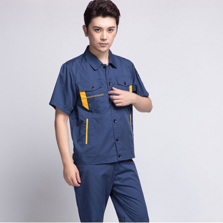 深蓝配桔红短袖工作服AD069