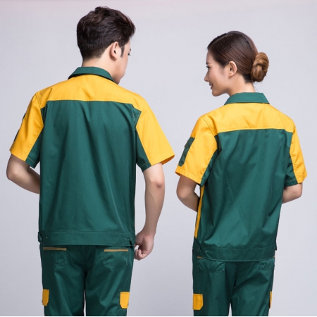 苏州鹰诺服装:墨绿拼黄色夏季工作服AD08-3
