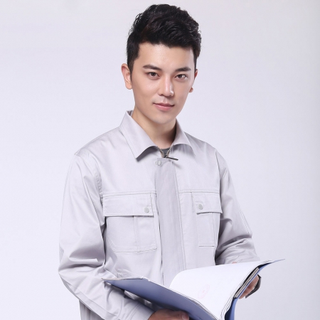 卡其拼藏青涤棉纱卡长袖工衣AC109