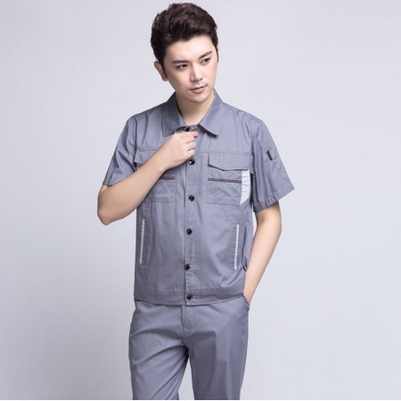 苏州鹰诺服装:浅灰拼绿色全棉工作服AC121-CQ