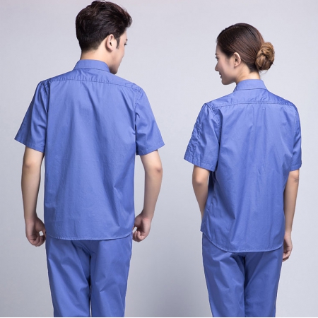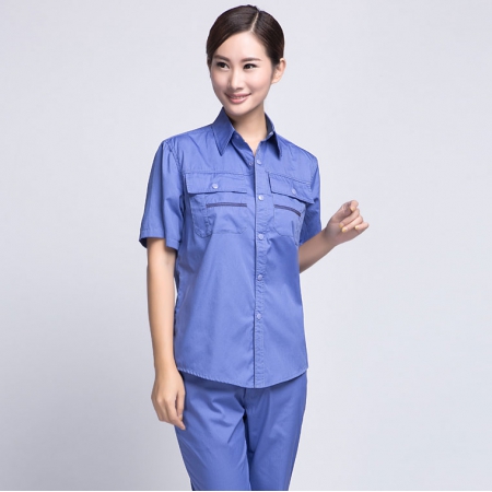 苏州鹰诺服装:湖蓝拼浅灰工作服AC20-2