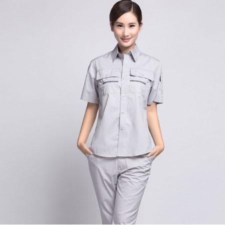 苏州鹰诺服装:浅灰拼中灰全棉秋季工作服AC06-1