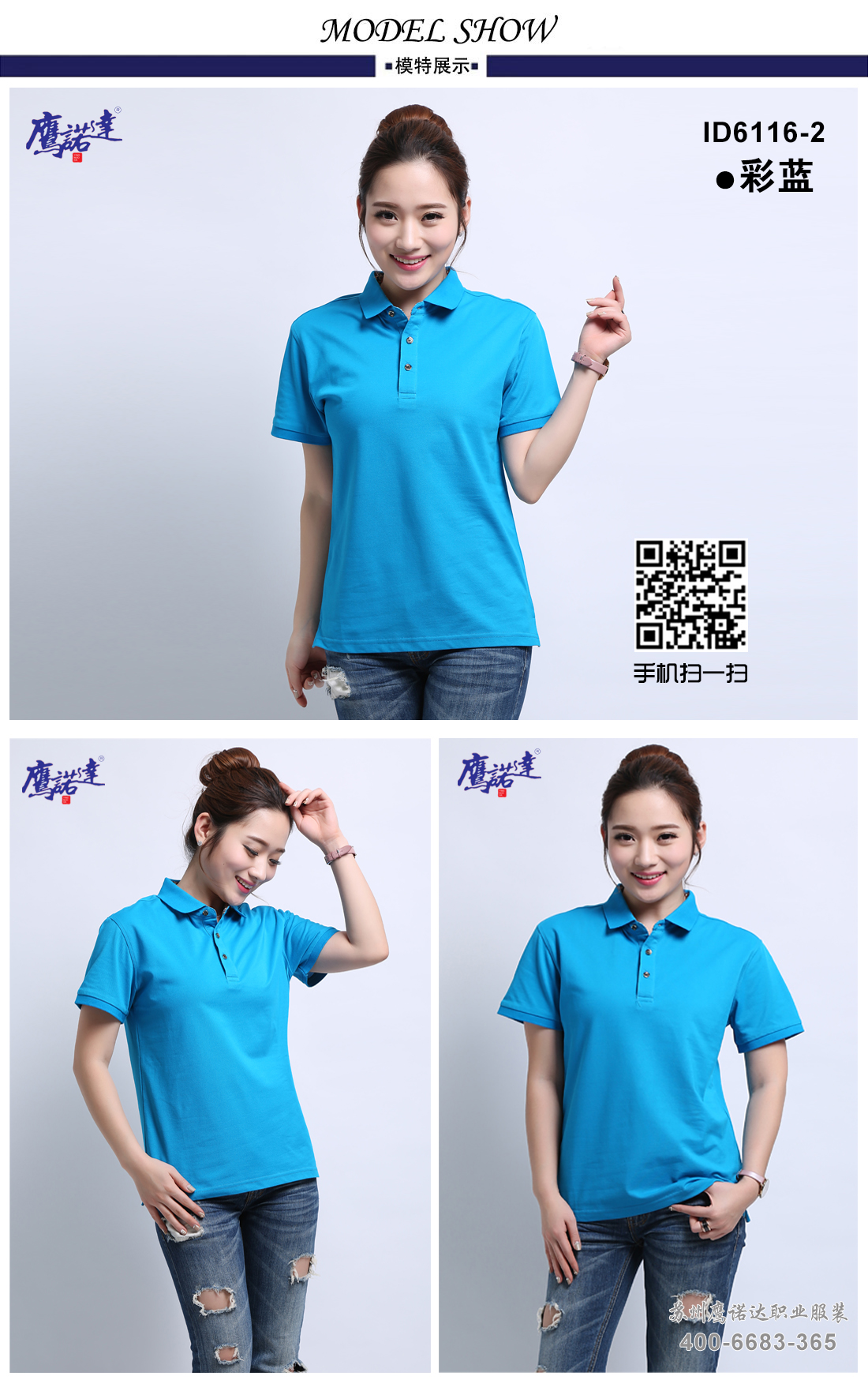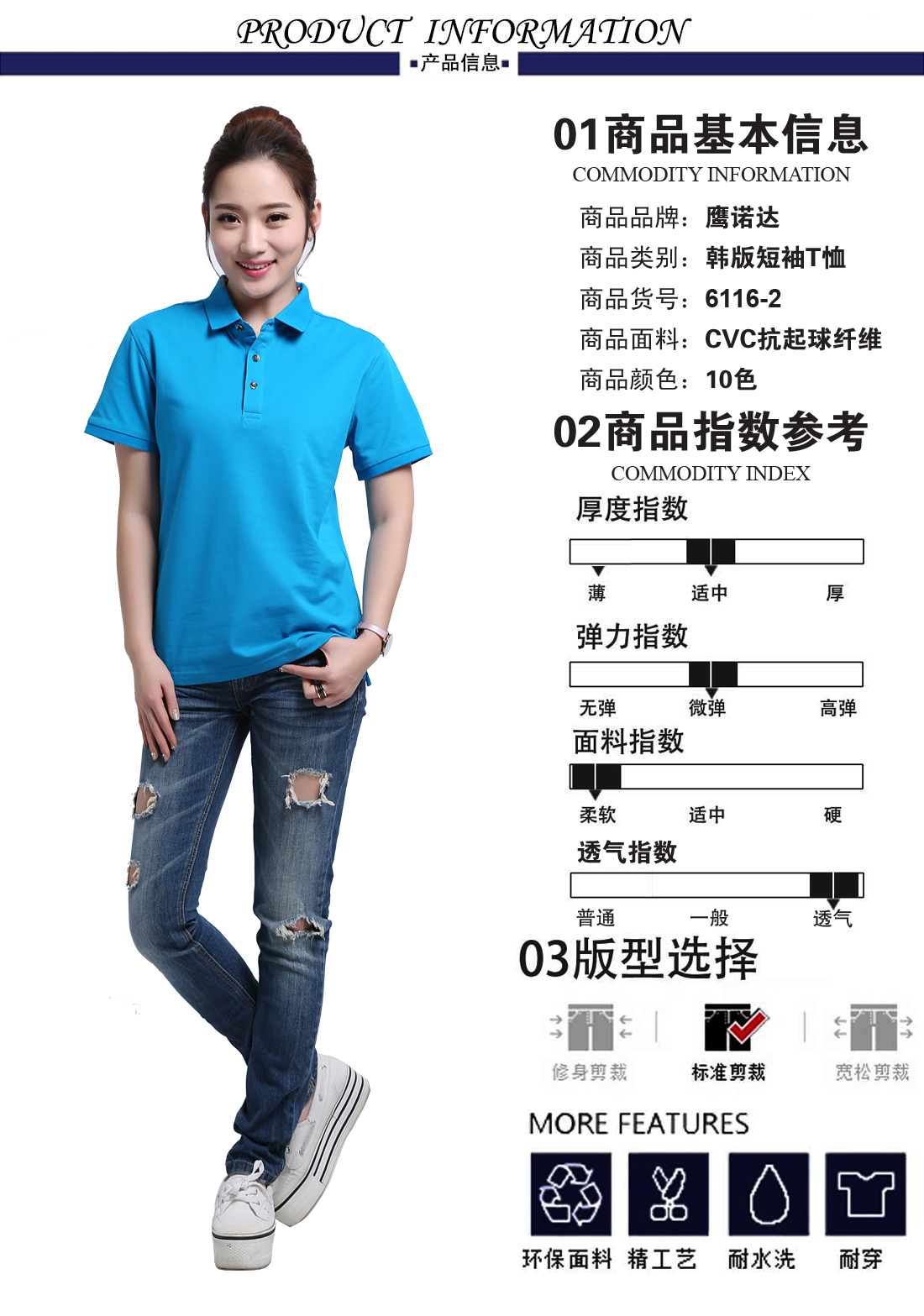 苏州鹰诺服装:丝光棉修身t恤衫工作服 ID264