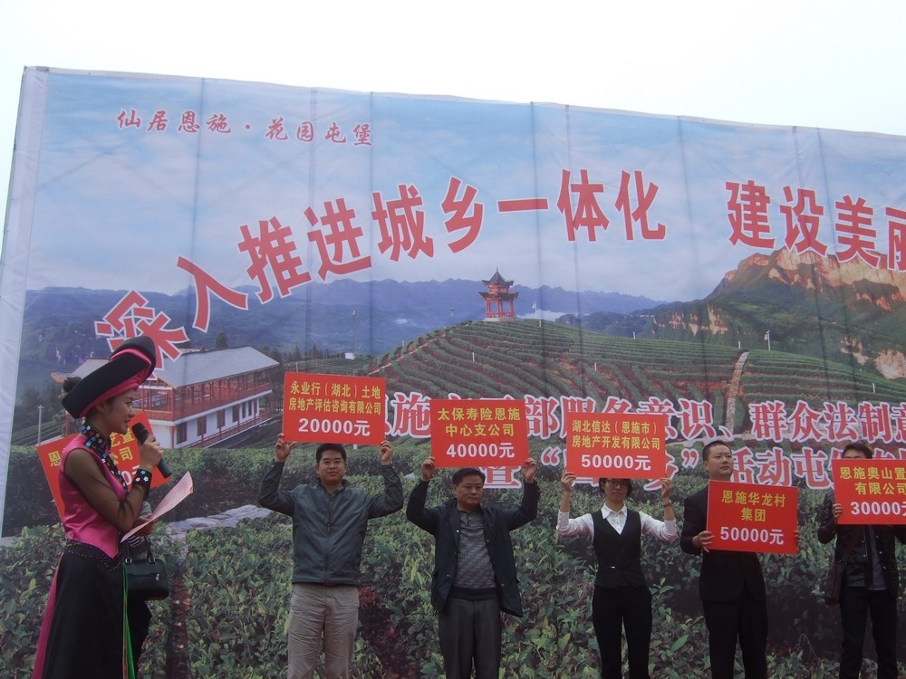 日,由恩施市委宣传部主办,市司法局、文体局和屯堡乡人民政府承办的“深入推进城乡一体化,建设美丽富饶新马者”暨“干部服务意识”、“群众法纪意识”教育主题活动在恩施市屯堡乡马者村举行。永业行恩施分部副总经理雷小明代表公司参加活动,并为屯堡乡马者村捐款20000元以支援该村经济建设。