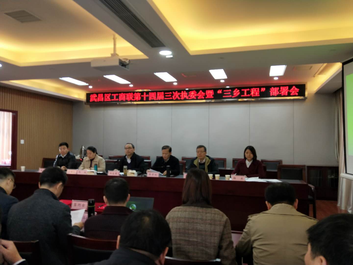 2018年3月21日,武汉市武昌区工商联(总商会)第十四届三次执委会暨“三乡工程”部署会在新洲区召开。会议由武昌区政府副区长、区工商联主席向悦主持。武昌区委常委、组织部长、统战部长胡太荣,新洲区委常委、组织部长、统战部长易有权出席会议并讲话。