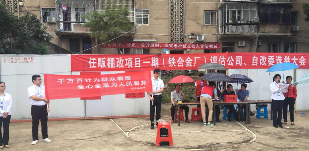 选举大会以公开、透明的方式进行,永业行等四家评估机构依次进行了现场推介,对本公司在房屋评估工作方面的优势及业绩作了陈述,经过棚改区选举的15名居民代表全程参与投票推选,永业行以全票当选为该项目的评估机构。
