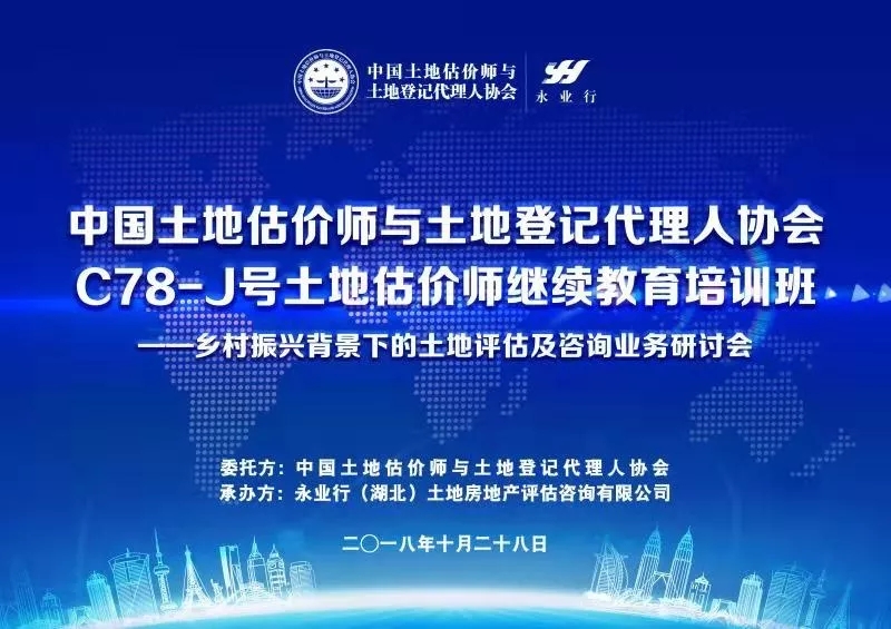 10月28日,由中国土地估价师与土地登记代理人协会(以下简称“中估协”)主办,永业行承办的"C78-J号土地估价师继续教育培训暨乡村振兴背景下的土地评估咨询研讨会"(下称"研讨会")在武汉召开。来自全省多地国土、房产及相应的土地储备、房屋征收、棚户区改造等部门及多个房地产开发、评估、征收企业的领导和专家,永业行全体高管、总部及分部的土地估价师共200余人参加会议。国家和省主管部门有关领导莅临现场指导,湖北省土地估价与登记代理协会秘书长周晓莺现场督导并讲话。永业行董事长兼总裁潘世炳在开班仪式上致辞,副总裁刘晓峰主持会议。