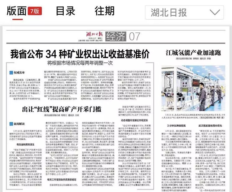 2019年3月,《湖北日报》对省自然资源厅牵头,永业行承担的“矿业权出让收益市场基准价项目”进行报道。湖北省矿业权出让收益基准价是建立在多年对矿产品价格动态监测大数据支持的基础上,以严谨的姿态,科学的方式对出让收益征收管理进行了制约,在很大程度上避免国有资产流失。