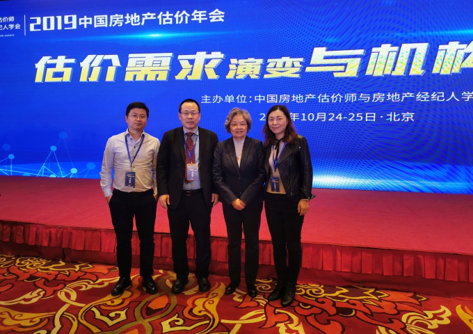 2019年10月24-25日,中国房地产估价年会在京召开,会议由中房学副会长兼秘书长柴强博士主持,中房学会长杜娟、住房与城乡建设部房地产市场监管司副司长王策等领导出席会议,中房学常务理事、永业行董事长兼总裁潘世炳受邀发表《政府职能改革和评估业务延伸》的主题演讲,副总裁雷小军、不动产事业群技术总监郭华参加本次会议。
