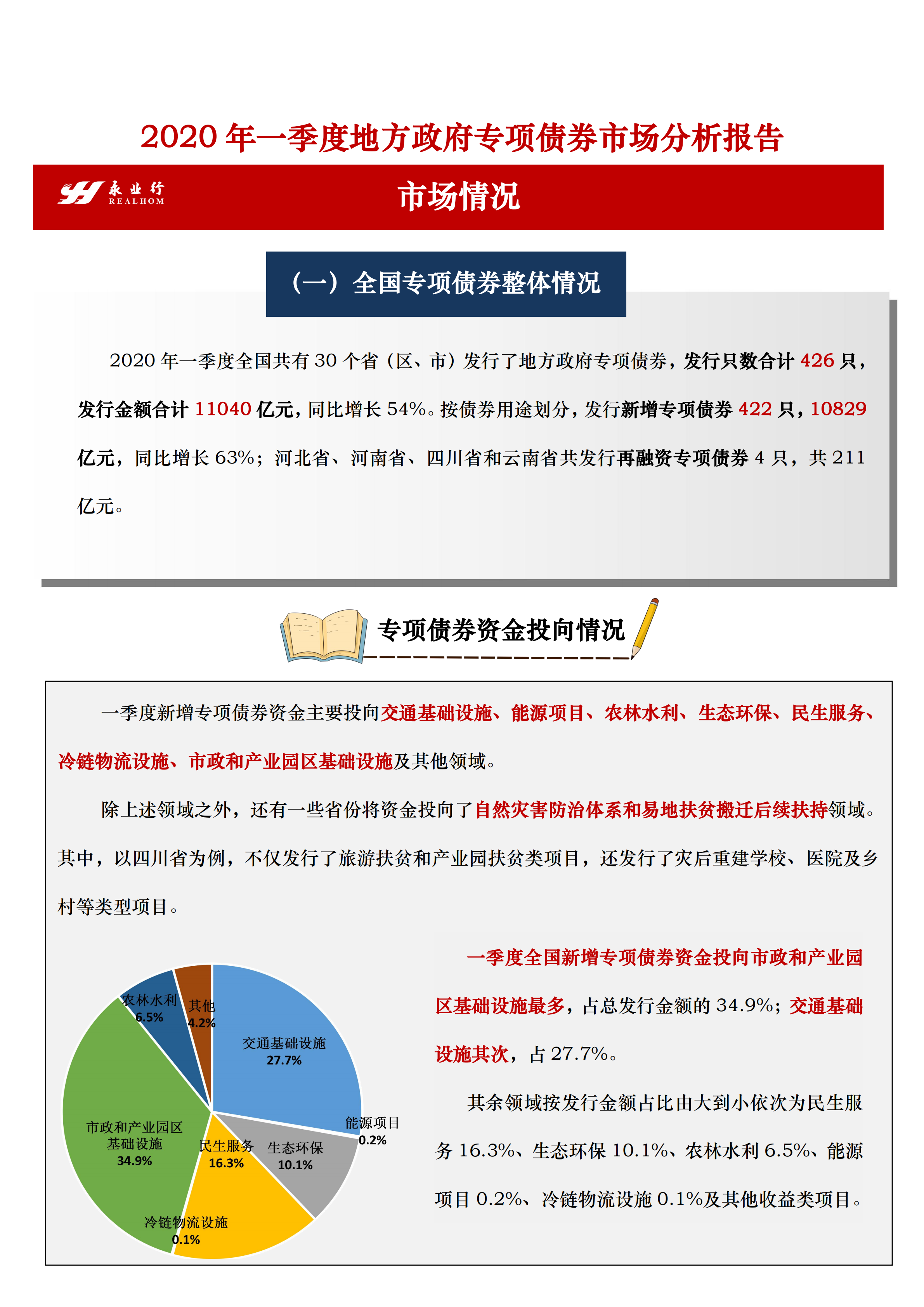 【永业行观察】2020年一季度地方政府专项债券市场分析报告