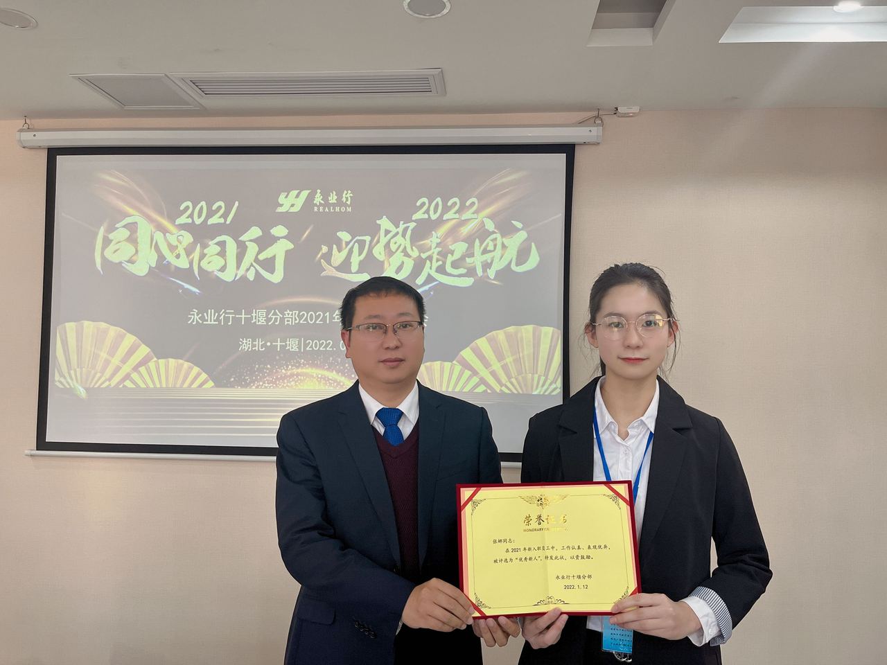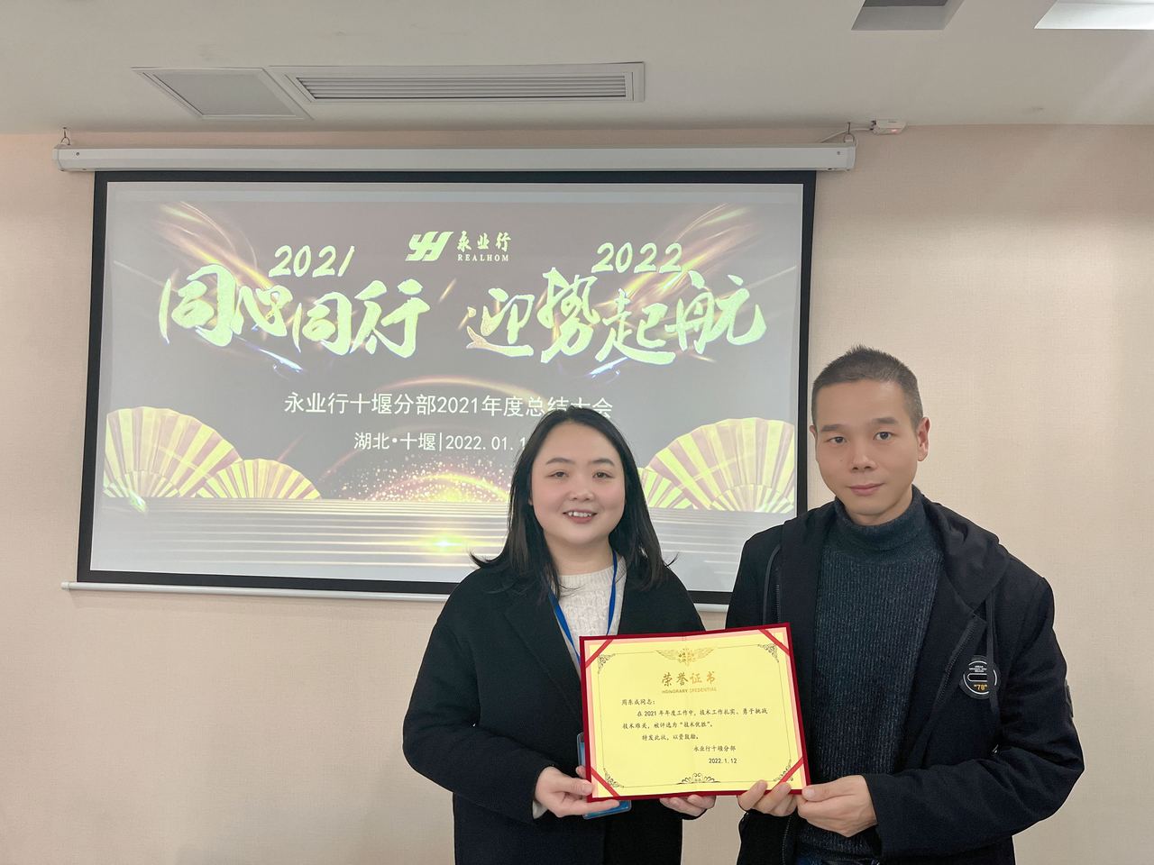 2022年1月12日下午,永业行十堰分部召开2021年年终总结会。永业行董事长潘世炳、副总裁文云波,十堰分部总经理周小川,总部各职能部门负责人及代表、十堰分部全体员工以线上线下形式参加会议。
