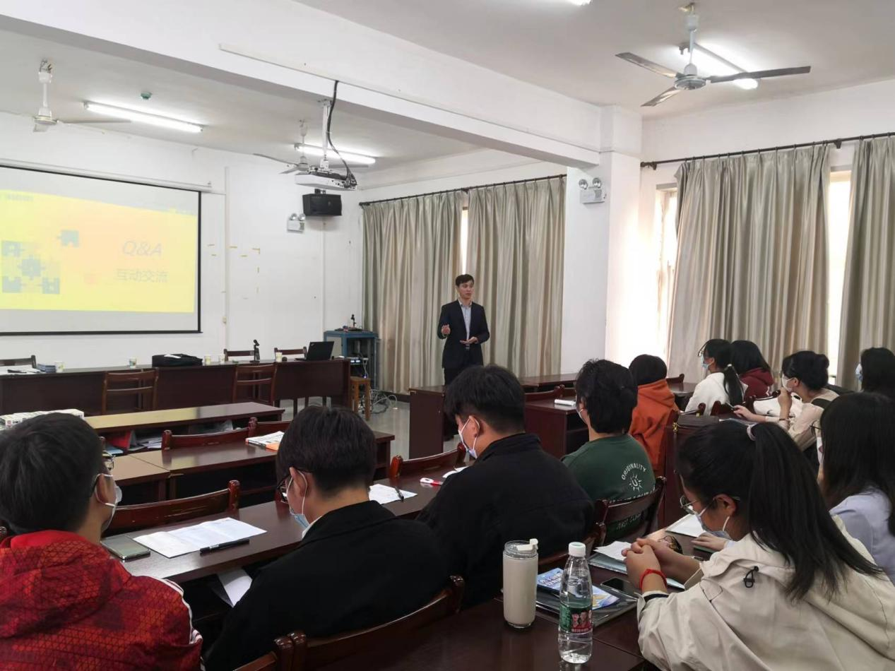在企业知识互动问答环节,同学们踊跃举手提问,孝感分部总经理梁小虎就公司的规章制度、福利待遇、永业行、组织架构等相关问题,积极为大家答疑解惑。孝感分部综合部也就公司人力资源政策进行了补充介绍,并向在座的学子们送上了精心准备的小礼品,现场氛围轻松活跃。宣讲结束后,同学们纷纷递上个人简历,表达了争做“永业行新人”的积极愿望。