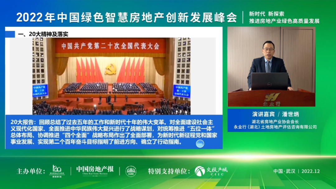 12月20日,由湖北省房地产业协会、中国房地产报、中国城市与区域治理研究院主办,湖北交投产城控股集团有限公司协办的“2022年中国绿色智慧房地产创新发展峰会”以线上形式召开。