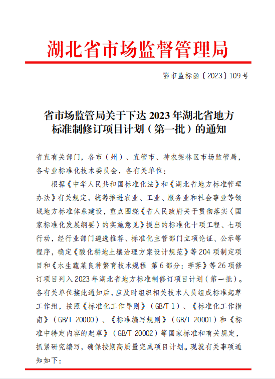 近日,根据《湖北省市场监督管理局关于下达2023年湖北省地方标准制修订项目计划(第一批)的通知》,永业行作为牵头单位负责起草的《湖北省老旧小区改造项目投资估算编制规范》和作为主编单位负责起草的《土地储备计划编制规范》2个项目成功立项。
