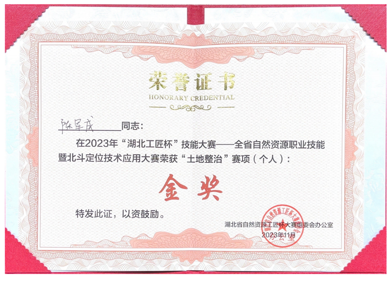 2023年“湖北工匠杯”技能大赛--全省自然资源职业技能暨北斗定位技术应用大赛“土地整治”赛项个人金奖