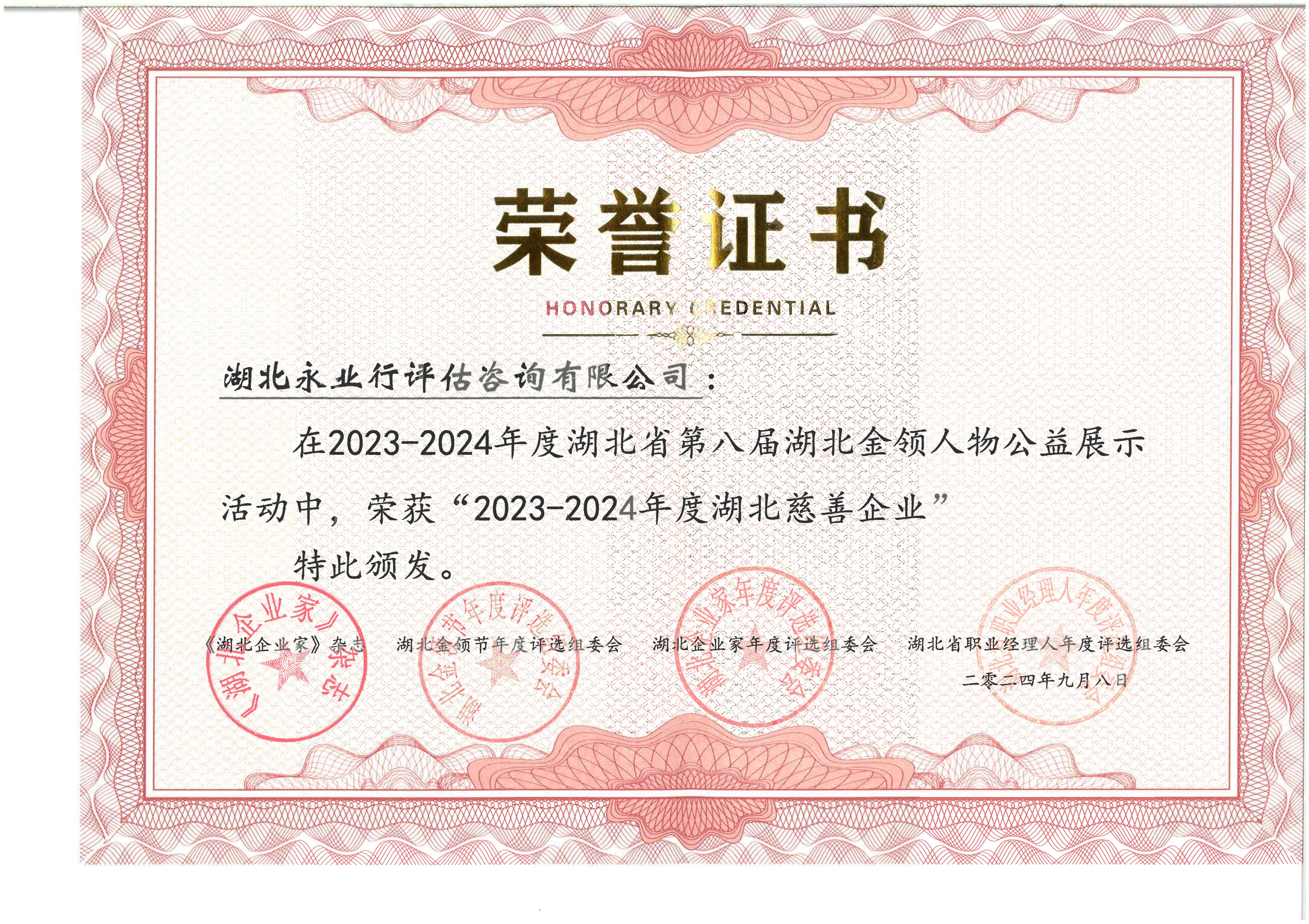 荣获2023-2024年度湖北慈善企业