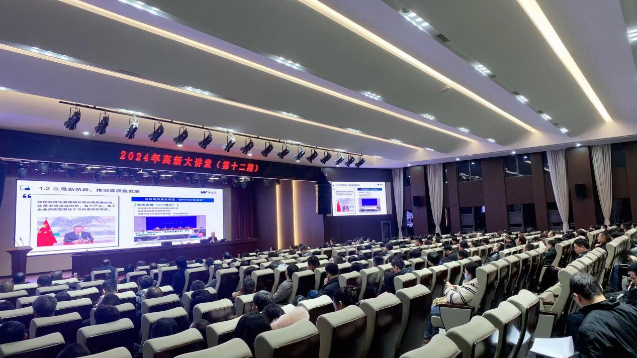 2024年12月5日,孝感高新技术产业开发区(下称“孝感高新区”)组织召开2024年“高新大讲堂”第十二期活动,孝感高新区党工委副书记、管委会主任舒俊主持会议。永业行董事长潘世炳受邀作“抢抓政策机遇 推动高质量发展”专题授课。