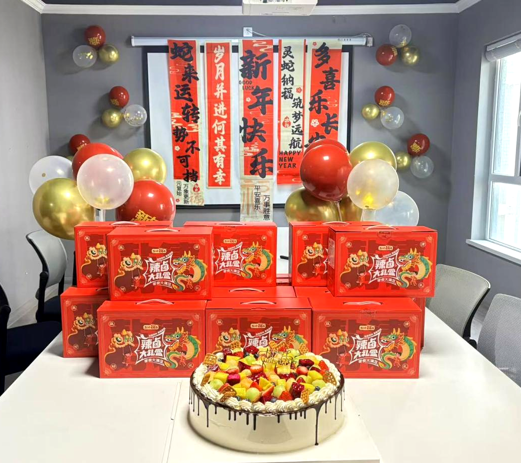 祥龙辞岁福泽满,金蛇迎春瑞气盈。大家坐在一起分享生日蛋糕,画着饱含新年祝福的数字油画,玩“狼人杀”“不要做”挑战等小游戏;大家亲手熬糖、挂糖,制作了一串串晶莹剔透、红亮诱人的水果冰糖葫芦,瞬间勾起心底最温暖的儿时回忆。活动现场节日氛围浓厚,甜蜜与欢乐同行,咸宁分部全体员工感受到了“大家庭”的温暖。