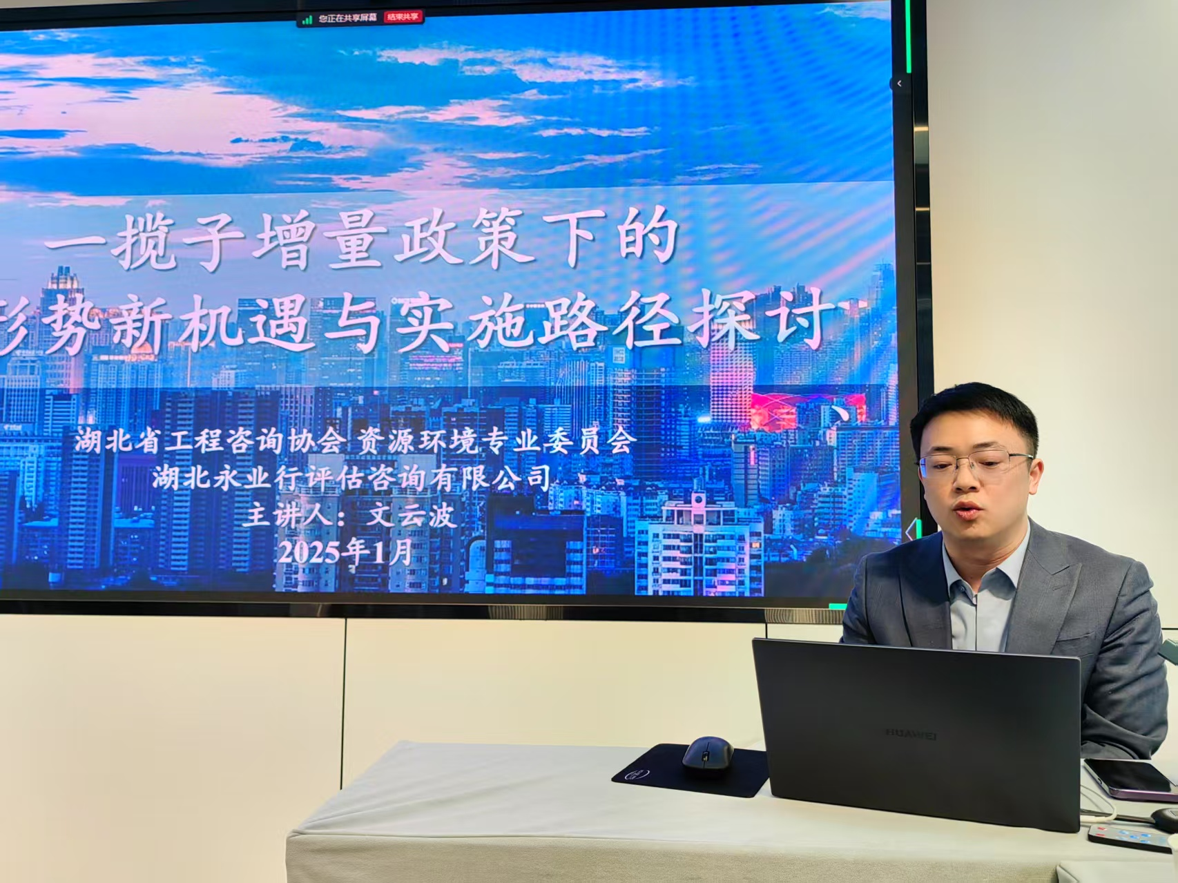 2025年1月16日,湖北省工程咨询协会资源环境专业委员会2024年度总结大会暨首次“公开课”在永业行中碳登办公区召开。永业行作为资环专委会主任单位主办,协会副秘书长王炜明,资环专委会主任委员、永业行高级副总裁文云波,技术中心常务副总经理郑昀,投资金融事业群研发中心执行总经理范丽邦,资环专委会各委员单位、协会会员单位近300人通过线上线下参加会议,资环专委会秘书长、永业行投资金融事业群副总经理赵辉主持会议。