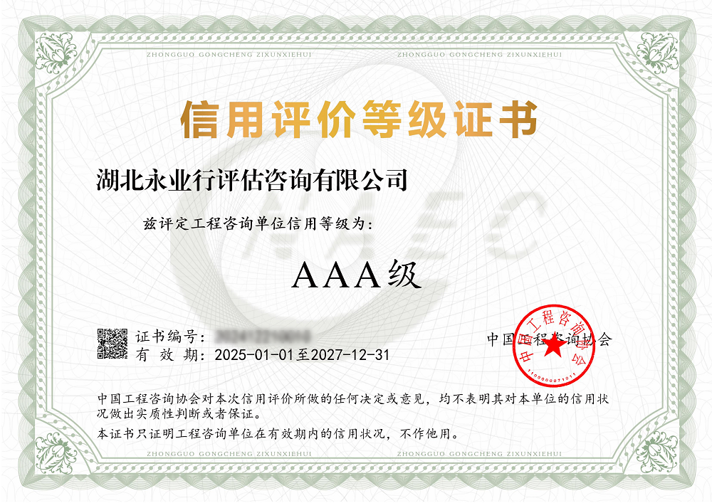 工程咨询单位信用等级AAA级