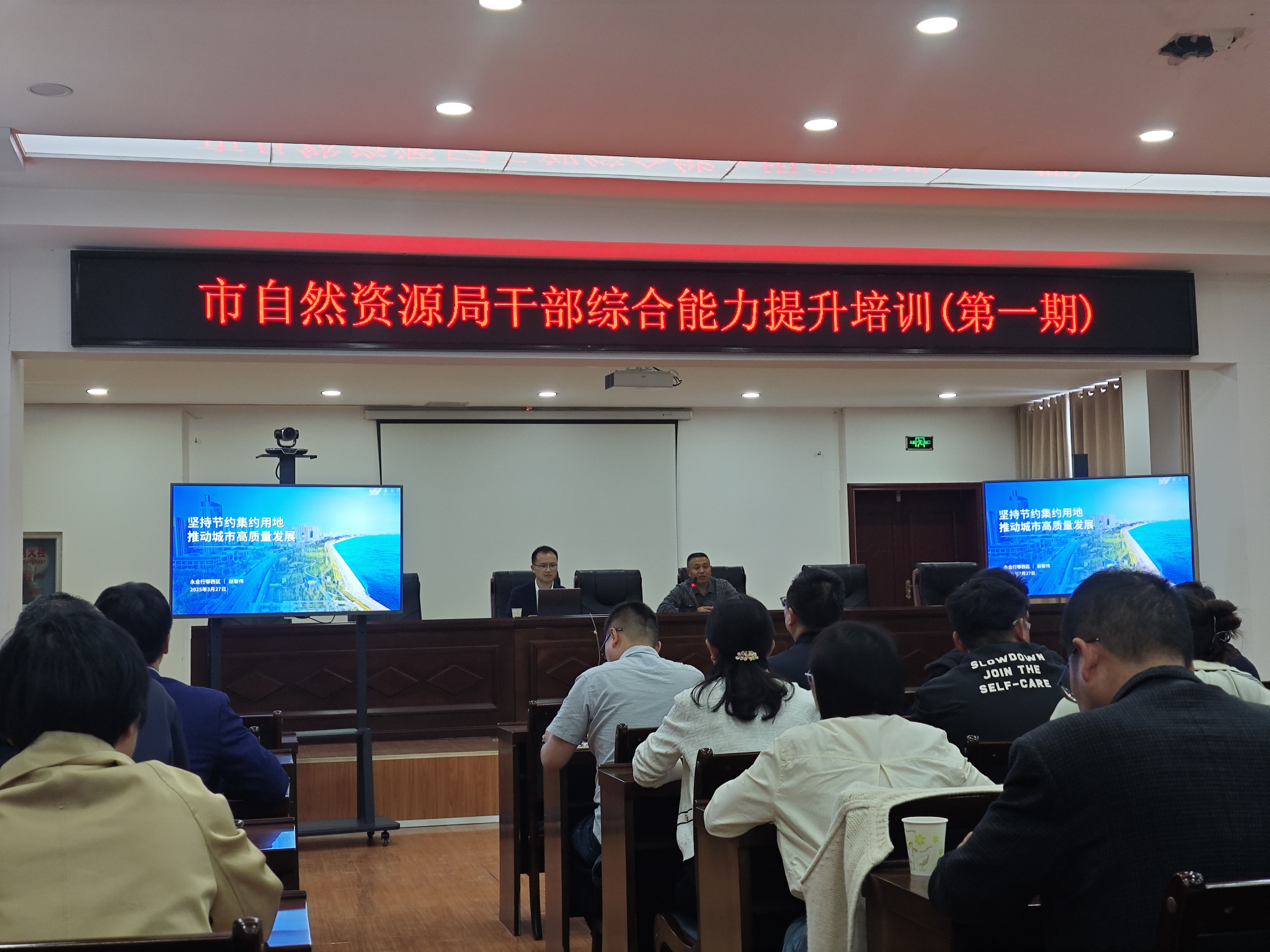 2025年3月27日,枝江市自然资源和规划局组织召开局干部综合能力提升培训(第一期)活动,党组成员杨圣林主持会议,永业行鄂西区副总经理赵智伟受邀作“坚持节约集约用地,推动城市高质量发展”培训交流。