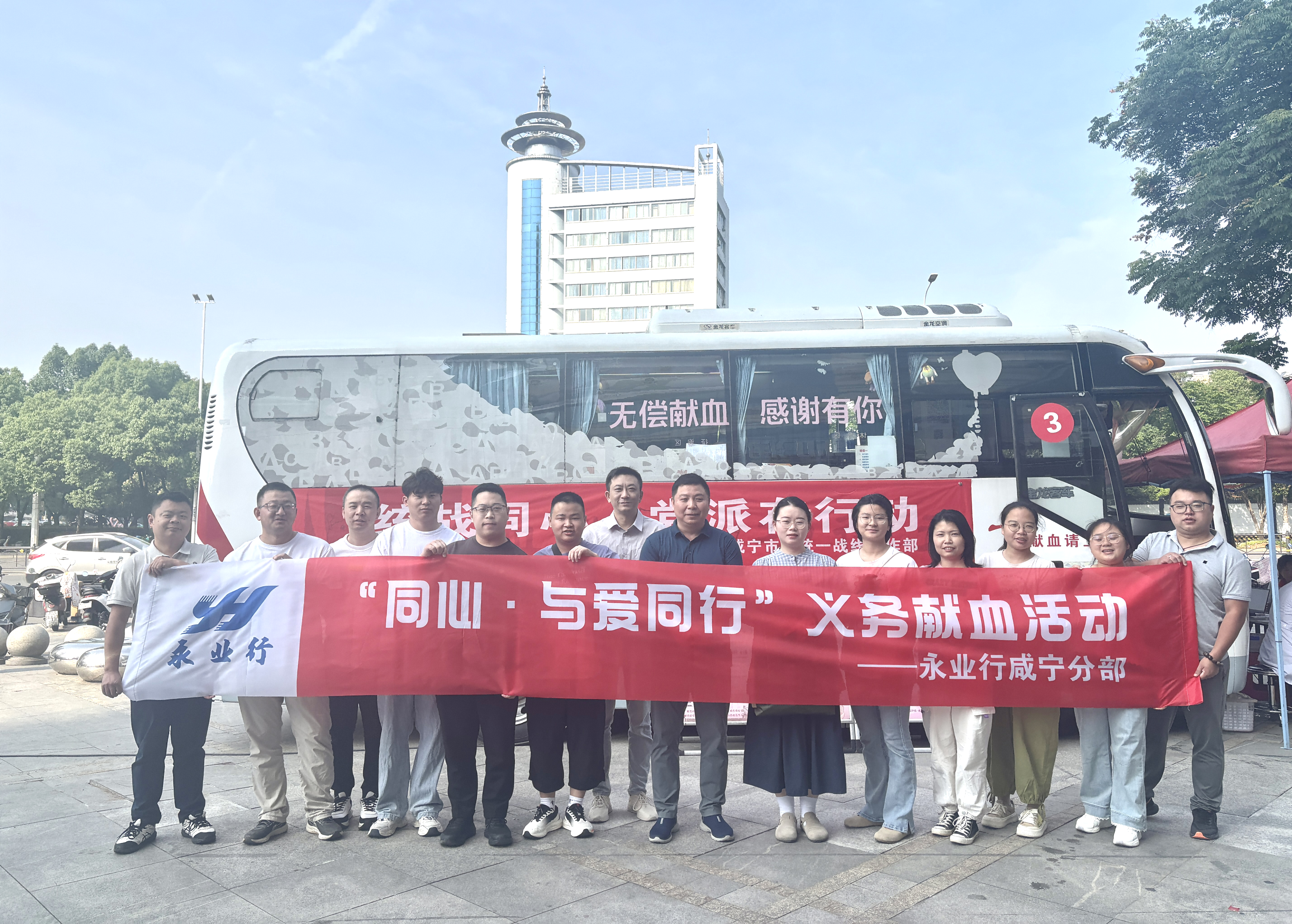 2025年5月27日,为响应中共咸宁市委统战部“同心·与爱同行”义务献血活动号召,咸宁分部总经理周志琦率分部员工参加了义务献血公益活动,大家纷纷挽起衣袖捐献热血。