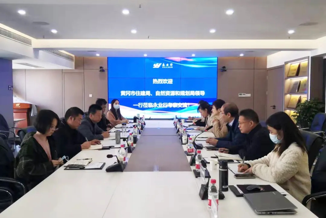 2021年11月25日,黄冈市住房和城乡建设局党组成员、副局长郭富秋一行莅临永业行考察交流。永业行轮值总裁王琴、副总裁吴学锋热情接待考察组并参加座谈。