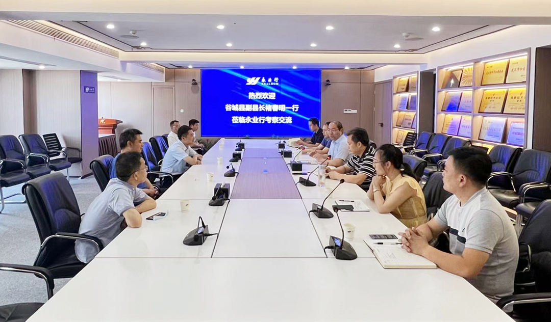 2022年6月15日,谷城县副县长褚春明一行莅临永业行考察交流。永业行副总裁吴学锋、程为民等热情接待考察组并座谈交流。