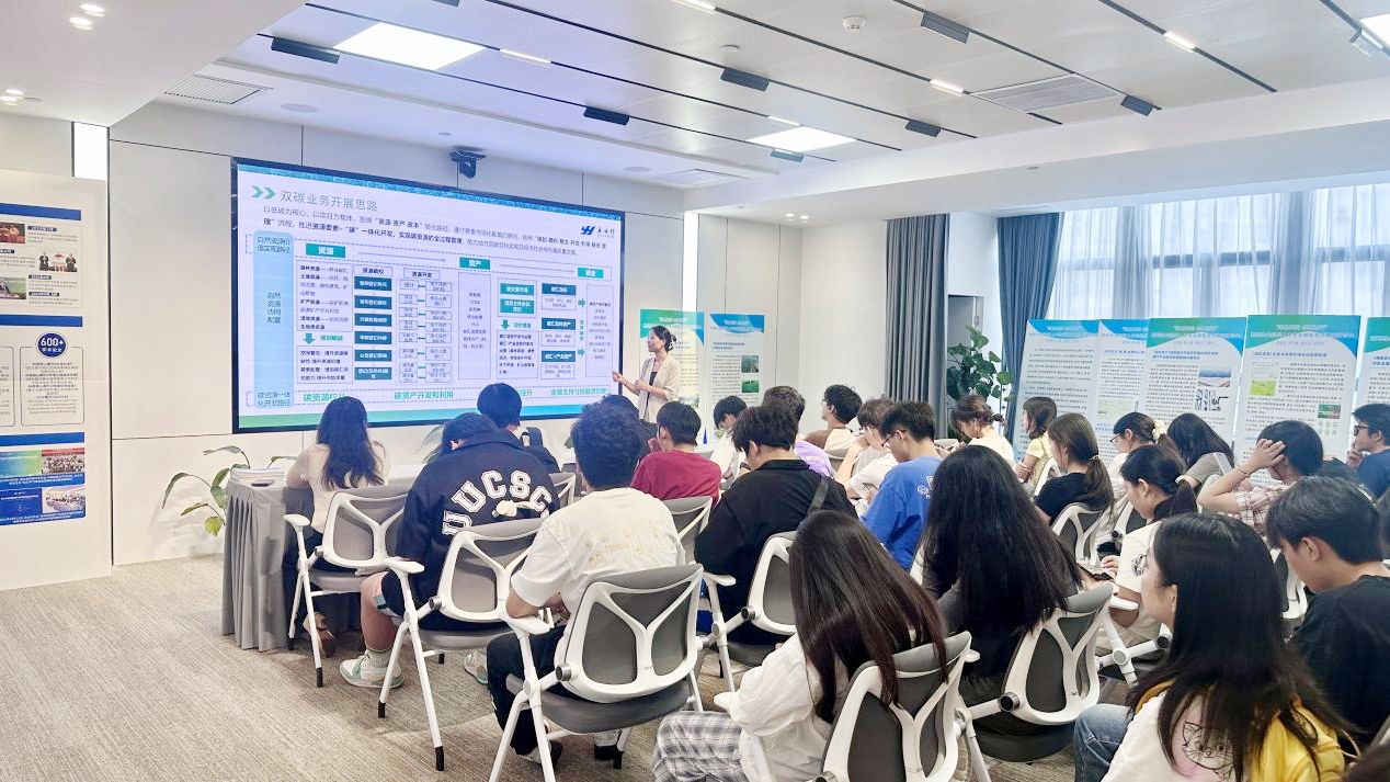 2025年7月1日,武汉理工大学资源与环境工程学院副教授黄敏、王珺婷带领80余名学生赴永业行中碳登办公区参观交流,开展暑期学堂活动,深入了解“双碳”目标任务,探索资源环境与低碳实践的深度融合路径与交流。