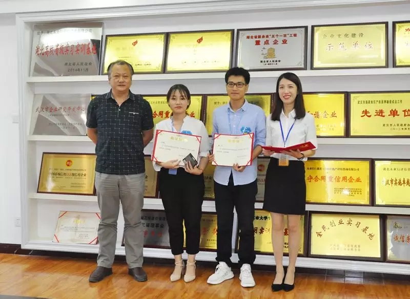 永业行投资咨询总监文云波、国土业务总监吴学锋为优胜奖获奖者房地产事业部许艳红、张挚,地产顾问事业部李清昀颁奖