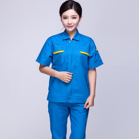 苏州鹰诺服装:艳蓝色短袖工作服AD12-4