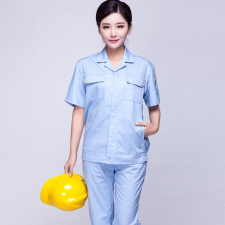 苏州鹰诺服装:艳蓝色短袖工作服AD12-4