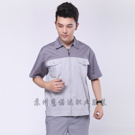 苏州鹰诺服装:清灰拼银灰全棉夏季工作服AD06-2