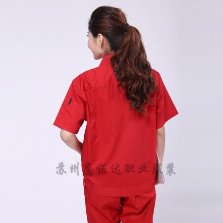 苏州鹰诺服装:藏青拼大红夏季工作服AD103