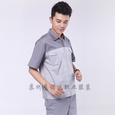 苏州鹰诺服装:深兰色短袖工作服AD04