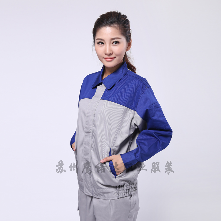 蓝色是大家普遍喜欢的一种颜色,也是大家选购衣服时选择最多的一种颜色,其原因除了蓝色给人希望之外,另外从蓝色工作服搭配角度来讲,不管是近似于黑色的蓝色,还是深蓝色,都比较容易搭配,而且,蓝色具有紧缩身材的效果,极富魅力。