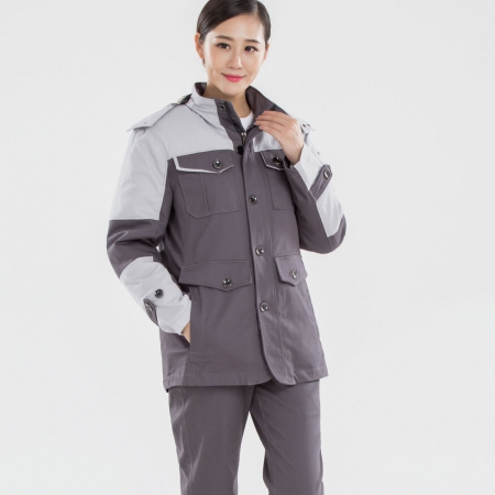 苏州鹰诺服装:艳蓝配浅灰涤棉纱卡电力防护服AC072-DG