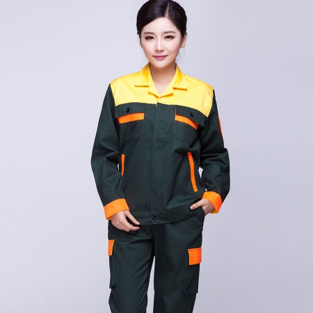 苏州鹰诺服装:邮电绿拼黄汽修工作服AC03-3