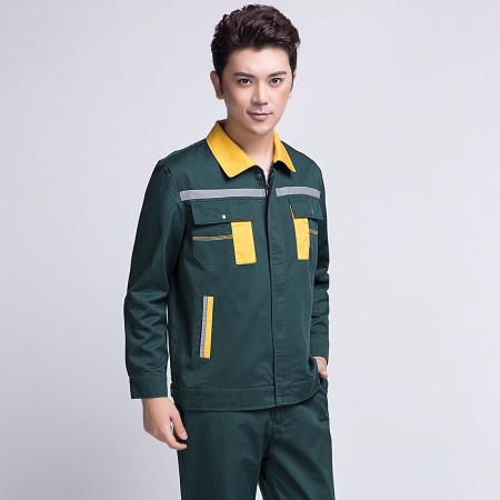 苏州鹰诺服装:墨绿拼黄色汽修工作服