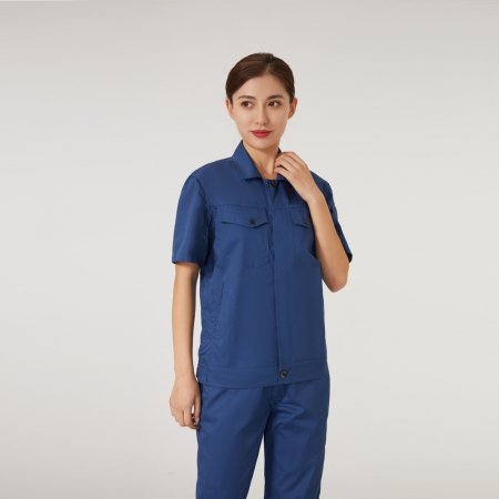 苏州鹰诺服装:深蓝拼浅蓝色工作服AD2205-1